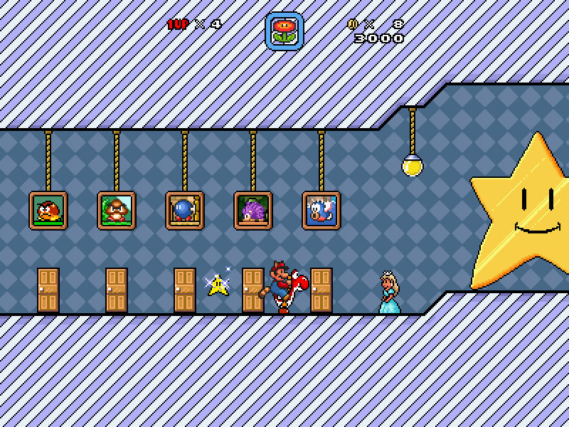 这个同人游戏最著名的就是它的强大的关卡编辑器,可允许你创作几乎所有你能想象到的关卡。实时编辑器模式可以让你在试玩时随时修改!你也可以创作你自己的世界,使用超马3或是世界版的世界地图风格。你也可以创作一个超马64那样的大厅关卡,让玩家通过收集力量之星推进进度。